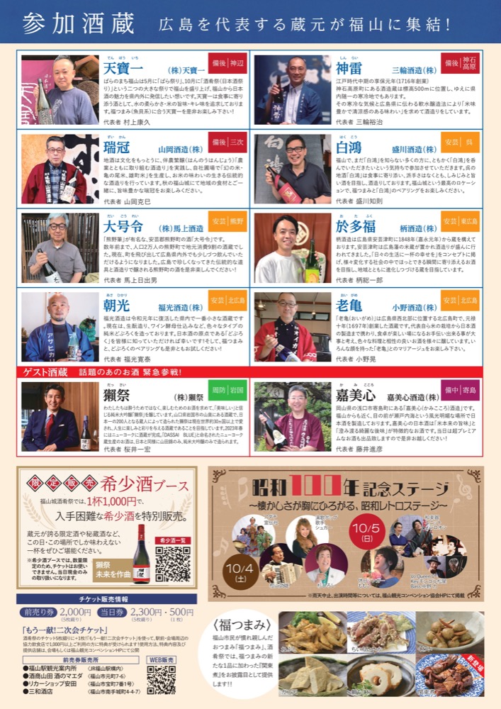 10月4日(土)、5日(日)11:00〜18:00 - 場所:福山城 天守前広場