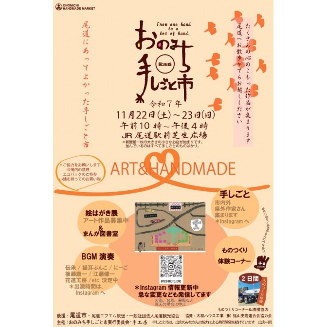 毎年春と秋に開催されている、市内外から作家が集まる手づくり市です。布小物・陶芸・アクセサリー・木工・食品など、多彩なハンドメイド作品が並び、ものつくり体験コーナー等もあります。