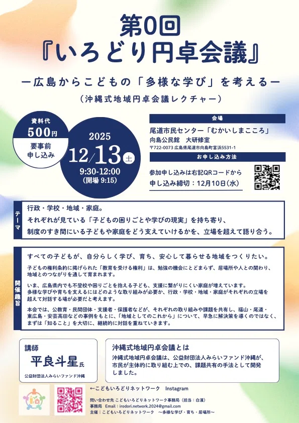 『いろどり円卓会議』ー 広島から子どもの「多様な学び」を考える ー (向島)