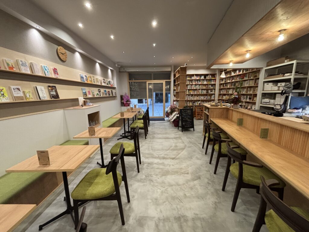 本屋とカフェが自然に溶け合った、落ち着いた時間が流れるお店です。